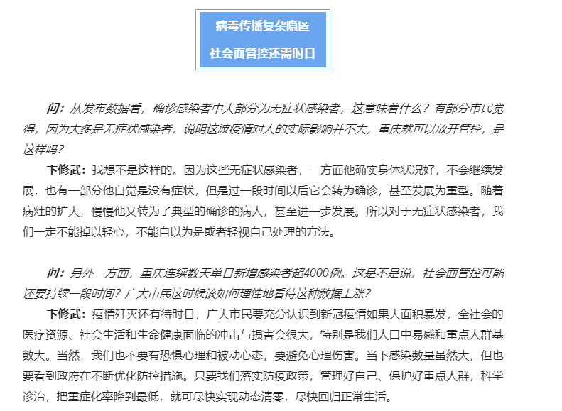 【齐心战“疫”】卞修武院士分析重庆疫情:措施适当及时必要,疫情歼灭还有待时日