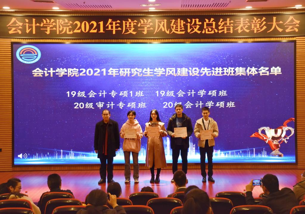 田双全为会计学院2020-2021学年研究生学风建设先进班级颁奖。