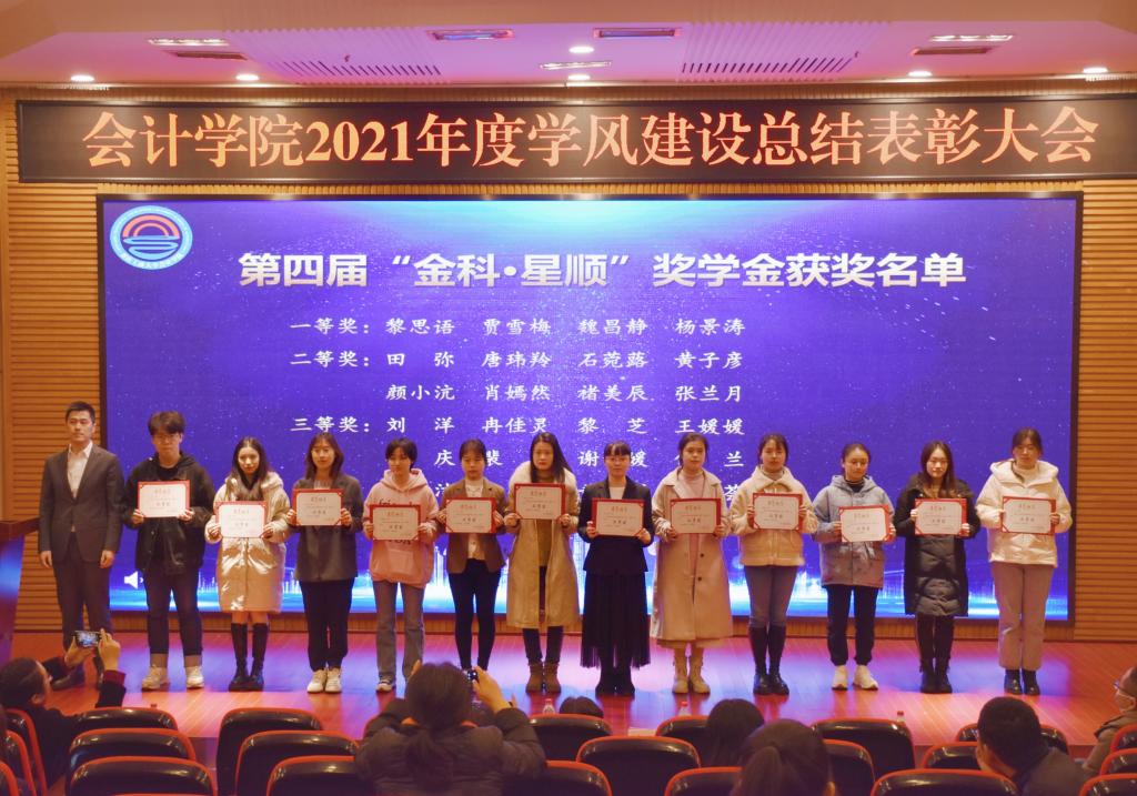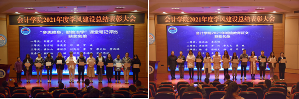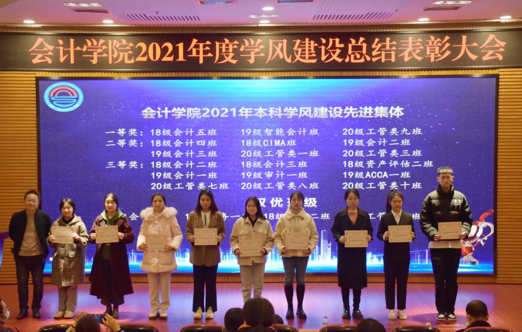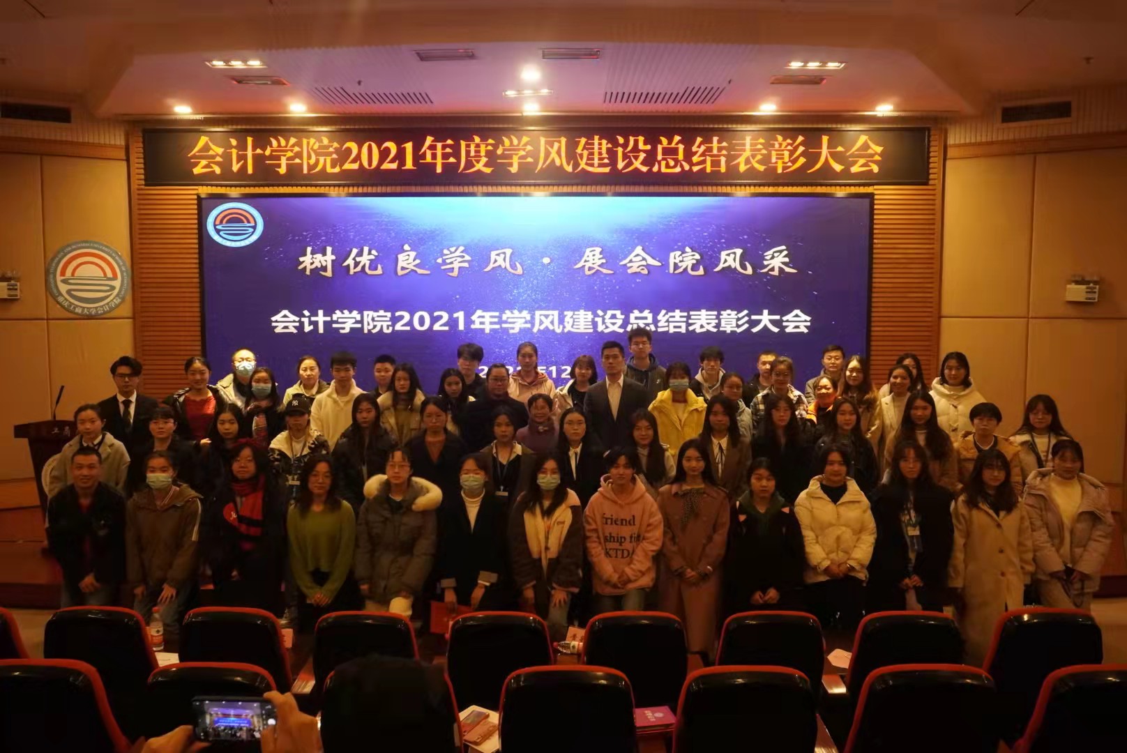 12月17日,会计学院在博智楼7200报告厅召开2021年学风建设总结表彰大会。党委学工部部长申卫东、研究生院院长田双全、校友黄星顺先生、会计学院党委罗惠玉书记、党委副书记郝颖,以及师生代表参加了表彰会。