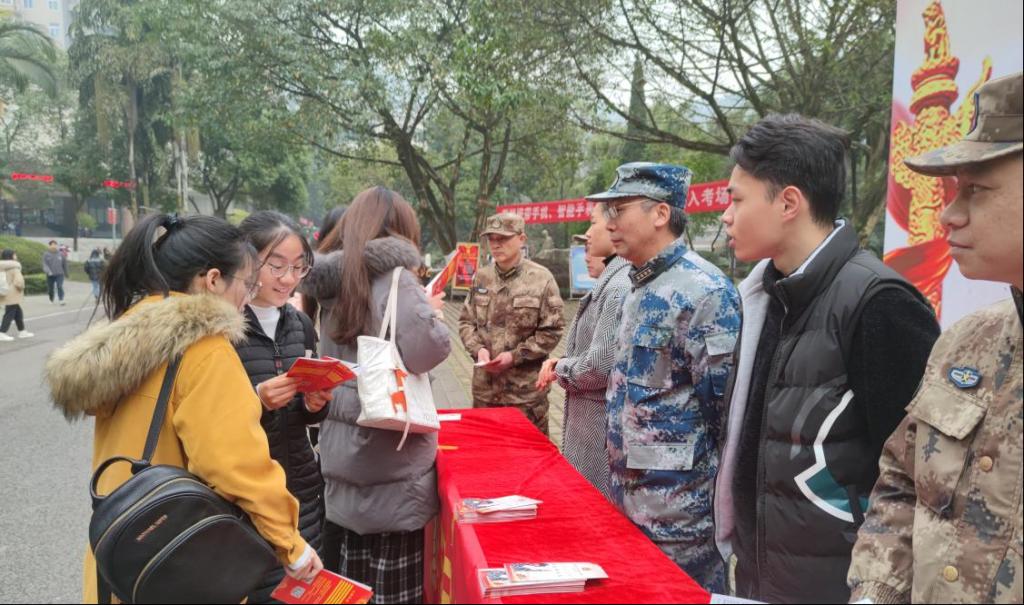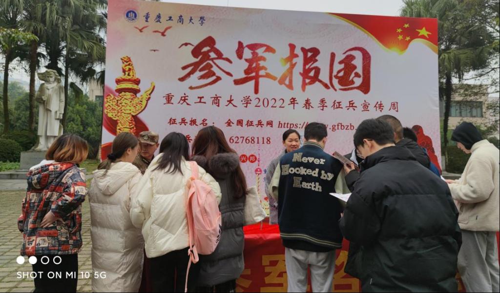 为加强征兵政策宣传,做好2022年春季大学生应征入伍工作,由党委武装部主办,华体会体育·(sports)官方网站国防教育协会承办的2022年春季征兵宣传周活动于2021年12月20日至24日在南岸校区、兰花湖片区、江北校区成功开展。