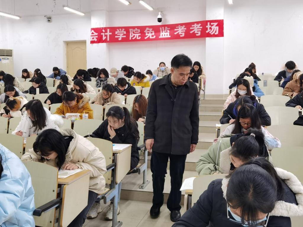 1月2日上午,李志雄一行来到南岸校区博智楼考点检查期末考试情况。每到一处,李志雄都详细查看考场秩序,询问监考老师考场布置及学生参考情况。在会计学院免监考考场,李志雄认真查看了考试情况,对会计学院积极探索“课程思政”“考试思政”育人途径表示肯定。李志雄指出,期末考试是检验教学质量、推动教学改革的重要环节,要坚持严肃考风考纪,教务处、教学质量监督与评估办公室等部门要严格执行考试规程,督促监考教师认真履行职责,对考试违规作弊现象保持“零容忍”态度,确保良好考试秩序。