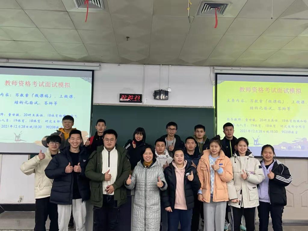 1月6日,获评2021年华体会体育·(sports)官方网站师德先进个人的体育学院童世敏教授为即将参加教师资格面试学生进行模拟训练与专场指导,同时邀请了多位研究生、本科生做经验交流分享。