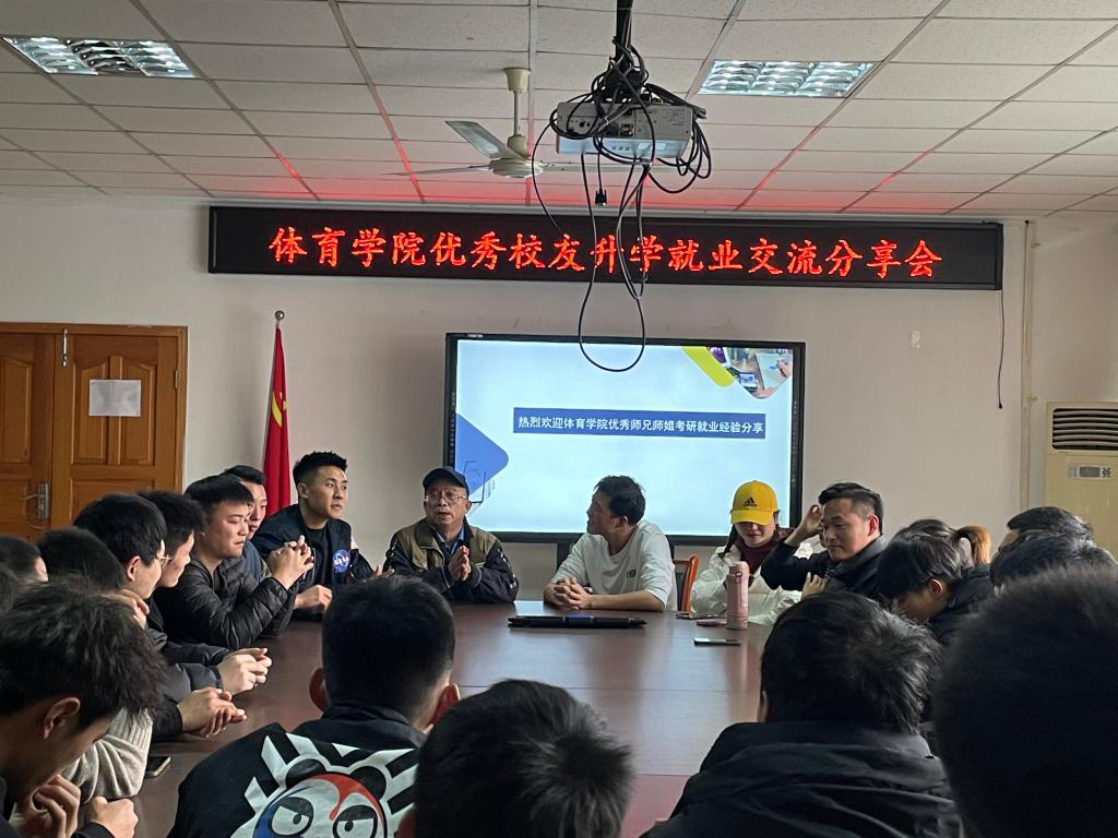 1月9日,体育学院邀请优秀校友回校交流,向学弟学妹提供就业信息、现场传授就业技巧。体育学院党总支书记王竹青在交流会上要求同学们要了解当前就业形势、政府和学校相关就业、创业政策,积极参与“西部计划”、“三支一扶计划”和“特岗教师”招考、参军入伍等基层就业项目;改变“等、靠、要”的思想,创造条件改变自我,积极就业。