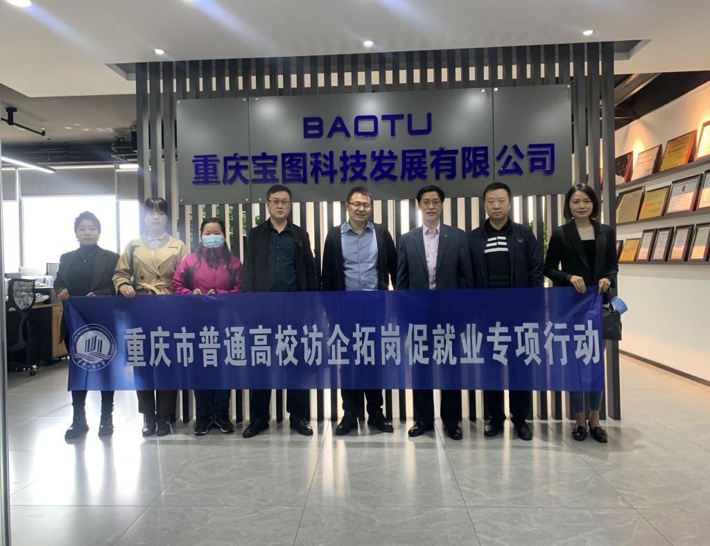 陈兴述一行首先参观了重庆宝图科技发展有限公司,听取了总经理杨德生对企业发展、业务板块、行业情况等介绍。座谈会上,公司总经理杨德生首先表达了对陈兴述一行的热烈欢迎,并表示非常期待能与高校在人才培养、行业发展、学术交流等方面的合作。陈兴述介绍了此行的目的以及当前学校就业工作情况、学院发展情况,并表达了全方位拓展校企合作形式,服务学生,服务社会,共促发展的愿望,同时也欢迎企业来校参加即将召开的春季双选会。张维贵、代富强等就校企合作具体形式与企业方展开了深入交流。