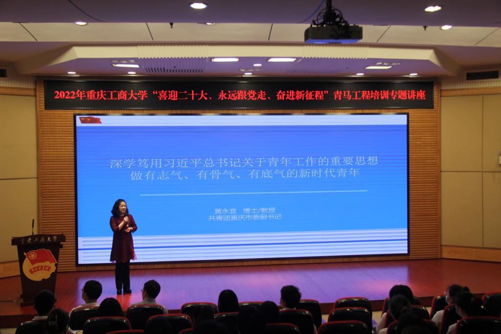 为迎接党的二十大胜利召开,引导广大青年团员深入学习贯彻习近平新时代中国特色社会主义思想,培养信仰坚定、能力突出、素质优秀、作风过硬的团学骨干,4月22日下午,校团委在博智楼7200报告厅举办2022年华体会体育·(sports)官方网站“喜迎二十大、永远跟党走、奋进新征程”青马工程培训专题讲座。共青团重庆市委副书记黄永宜作了题为《深学笃用习近平总书记关于青年工作的重要思想 做有志气、有骨气、有底气的新时代青年》的专题讲授。校团委全体专职团干、校级“青马工程”培训班学员、团员代表参与活动。