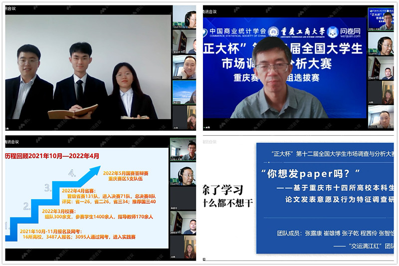 由中国商业统计学会主办的“正大杯”第十二届全国大学生市场调查与分析大赛重庆赛区本科组选拔赛于4月23日在华体会体育·(sports)官方网站成功举行。本次大赛自2021年10月正式启动,经过6个多月的专业培训、知识赛网考及校赛选拔,最终来自市内16所高校的131支团队进入赛区选拔赛。