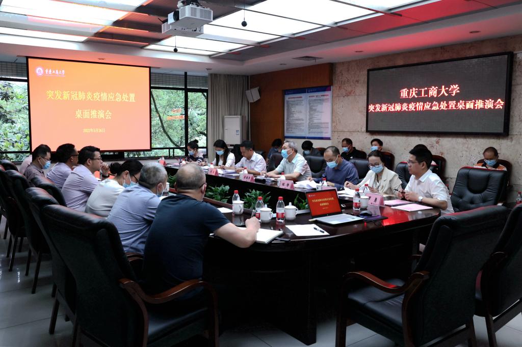 为有效提升学校在突发新冠肺炎疫情应急处置中的及时性、有效性和协同性,5月26日上午,学校在厚德楼3019召开突发新冠肺炎疫情处置桌面推演会,学校党委常委、副校长,新冠肺炎疫情应急工作领导小组常务副组长李国军出席会议,各专项工作组常务副组长、副组长、第一牵头单位疫情防控工作联络人参会。重庆城市管理职业学院学生处处长程静,安全管理处处长刘骏,基建后勤处处长徐芳,防控办常务副主任、党政办副主任马薇结合重庆城市管理职业学院在新冠肺炎应急处置中的实战经验和复盘总结,对桌面推演进行了全程现场指导。会议由疫情防控办公室主任、党政办公室主任罗勇主持。