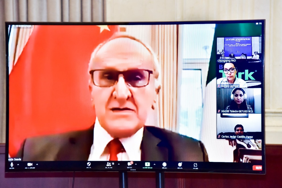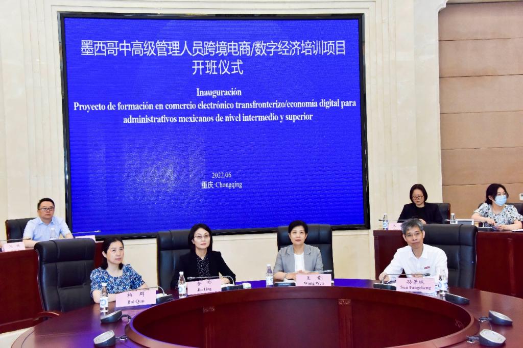 6月7日(墨西哥时间6月6日),由重庆市教育委员会、重庆市人民政府外事办公室主办、我校承办的重庆市人民政府外国留学生市长奖学金丝路项目-“墨西哥中高级管理人员跨境电商/数字经济培训”开班仪式在重庆外事大楼(线上)举行。校长孙芳城主持开班仪式,墨西哥外交部规划评估司司长卡洛斯·卡斯蒂洛、墨西哥驻华大使施雅德,重庆市人民政府外事办公室主任王雯、重庆市教育委员会副主任金玲、我校副校长柏群出席活动。来自墨西哥地方政府的近30名参训学员线上参加。