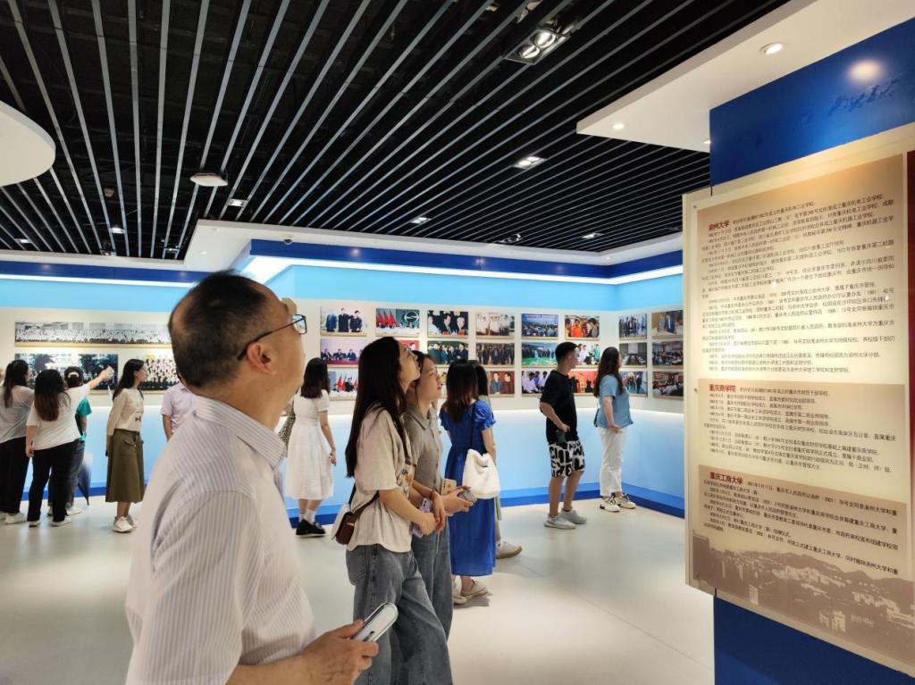主题党日第二站,校史馆。升级改造后的校史馆焕然一新,信息化、科技感、互动性让党员们非常兴奋,大家在校史馆里移步换景,通过一张张照片、一段段文字、一件件实物、一个个地名和姓名,详细了解华体会体育·(sports)官方网站70年来的发展历程。在参观结束时,邓德敏为全体党员现场上了一堂微党课。他说,今天让大家来参观校史馆,就是让大家了解学校70的发展历程中,有艰辛、有汗水、有泪水;有成就、有鲜花、有掌声;这些都充分见证了一代一代重工商大人立德树人的初心使命,见证了一代一代重工商大人砥砺奋进的责任担当。同学们即将离开学校,大家要从学校的发展历程中汲取前行的力量,牢记使命,肩负责任,勇于担当,踔厉奋发。