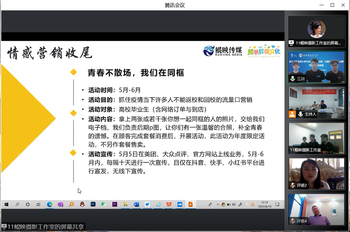 6月19日,第十二届全国大学生电子商务“创新、创意及创业”挑战赛(以下简称三创赛)重庆赛区选拔赛于在四川外国语大学举行。由于疫情原因,比赛采取了学生线上汇报答辩,评委线上与线下结合评审,纪检与仲裁线下评审的方式进行。今年三创赛由全国电子商务产教融合创新联盟、重庆市教育委员会主办,四川外国语大学、重庆市高等教育学会电子商务专业委员会承办。共有来自全市25所高校260支队伍1300名学生参赛。