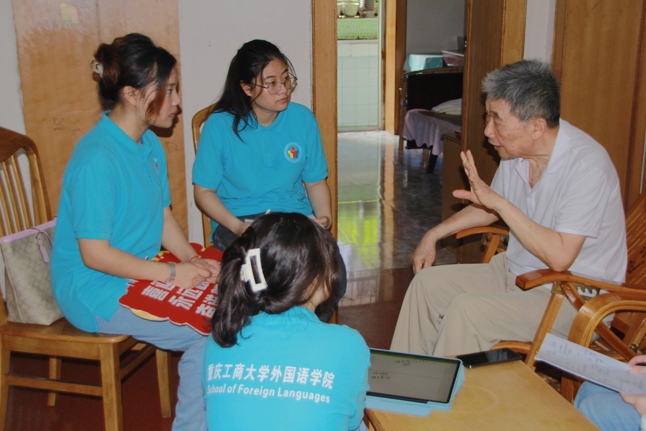 实践团成员与老党员们面对面交流,聆听他们讲述革命先辈的红色故事,追溯红色记忆,用心体悟红色文化。实践团成员张静怡谈到:“老党员是党史‘活字典’,每一位老党员的故事,都是一段艰辛奋斗创造的辉煌,也是一堂生动感人的好党课。作为新时代青年学生,我们要接好时代的交接棒,走好新时代的赶考路,确保党的事业‘薪火相传、后继有人’。”