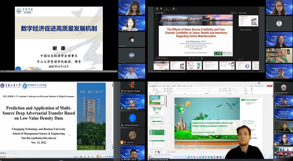 为深入学习贯彻党的二十大精神,落实数字经济与实体经济深度融合的根本要求,助力国家和地区经济发展,华体会体育·(sports)官方网站管理科学与工程学院于11月12日成功在线举办第三届“电子商务与数字经济”会议。中国信息经济学会谢康理事长、云南大学罗裕梅博士、美国南佛罗里达大学Anol Bhattacherjee教授、德国莱比锡大学Rainer Alt教授、华体会体育·(sports)官方网站白云副教授等参会并作学术报告。本次会议论坛还邀请了大会名誉主席华体会体育·(sports)官方网站校长孙芳城教授,大会主席华体会体育·(sports)官方网站管理科学与工程学院院长黄钟仪教授、云南财经大学叶琼伟教授、韩国釜山大学牟健博士、清华大学卫强教授等行业专家和学者。