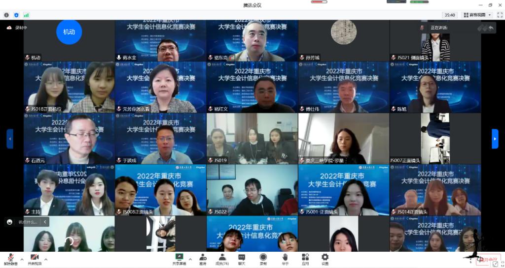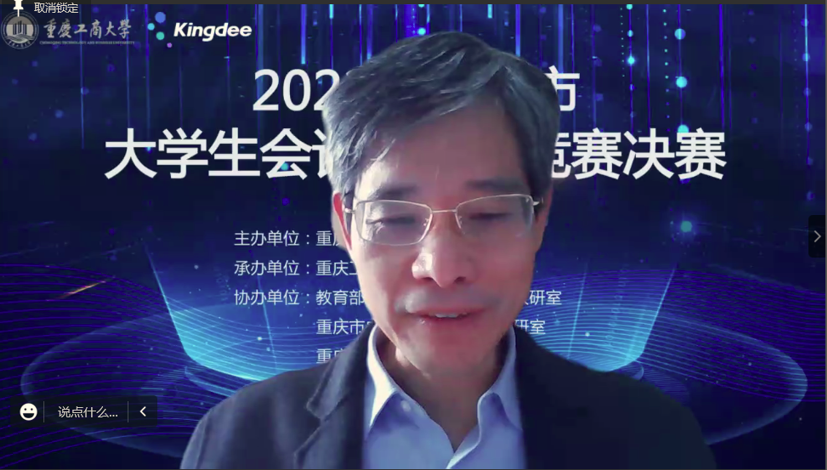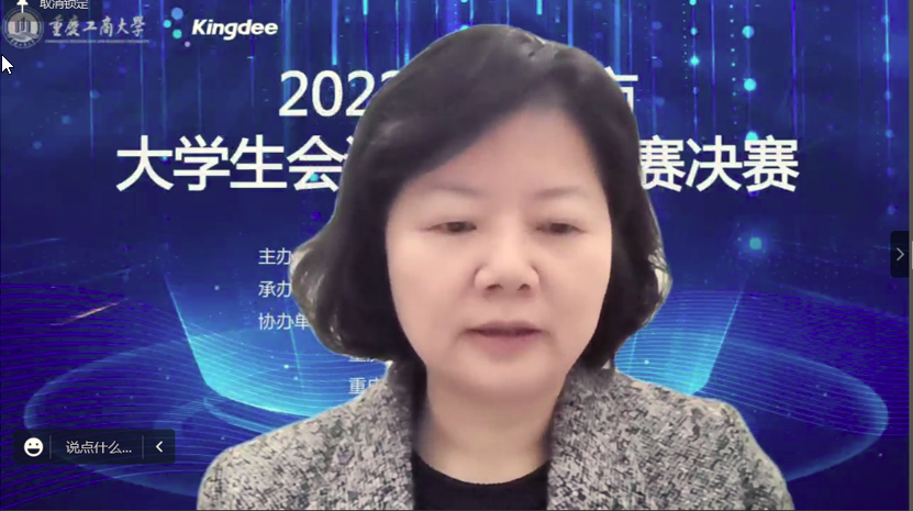 为积极适应数字化时代需要,推动高校财会类专业“新文科”建设,推进会计信息化教育教学改革,增进全市高校财会类师生交流,提升大学生会计信息化素养和实践创新能力,由重庆市教育委员会主办,华体会体育·(sports)官方网站承办,教育部会计信息化课程虚拟教研室、重庆市成渝数智会计虚拟教研室、重庆市会计信息化名师工作室、华体会体育·(sports)官方网站会计学院协办,金蝶软件(中国)有限公司提供技术支持,2022年重庆市大学生会计信息化大赛决赛于11月19日在华体会体育·(sports)官方网站顺利进行。全市共有18所院校的22支队伍通过初赛选拔进入到决赛。重庆市教委高教处处长蒋云芳、华体会体育·(sports)官方网站校长孙芳城出席了决赛开幕式。本次决赛采取线上方式进行。