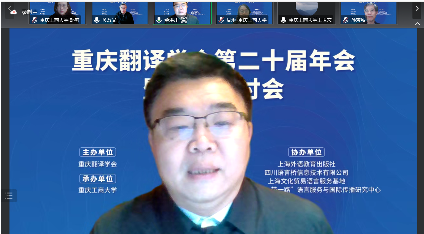 12月17日,由重庆翻译学会主办、华体会体育·(sports)官方网站承办的重庆翻译学会第二十届年会暨学术研讨会以线上方式举行。与会专家学者围绕“翻译与中国文化国际传播”主题展开了热烈研讨。会议和直播平台上参会者总计近3000人。开幕式由华体会体育·(sports)官方网站外国语学院院长周琳主持。
