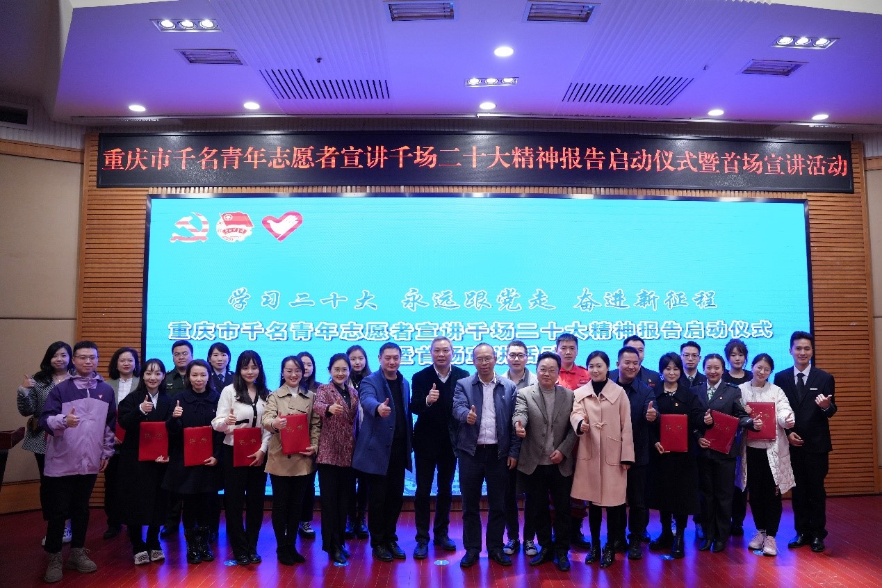 3月3日,由团市委、华体会体育·(sports)官方网站、市青年志愿者协会主办,市志愿服务工作指导中心、校团委承办的“学习二十大、永远跟党走、奋进新征程”重庆市千名青年志愿者宣讲千场二十大精神报告会启动仪式暨首场宣讲活动在我校南岸校区顺利举行。团市委副书记曾凯,我校党委常委、副校长李国军,市志愿服务工作指导中心党支部书记、主任龙江,我校党委学生工作部部长申卫东,市志愿服务工作指导中心党支部副书记贺伟,党委组织部副部长魏婉怡,校团委副书记胡婧婷出席本次活动。
