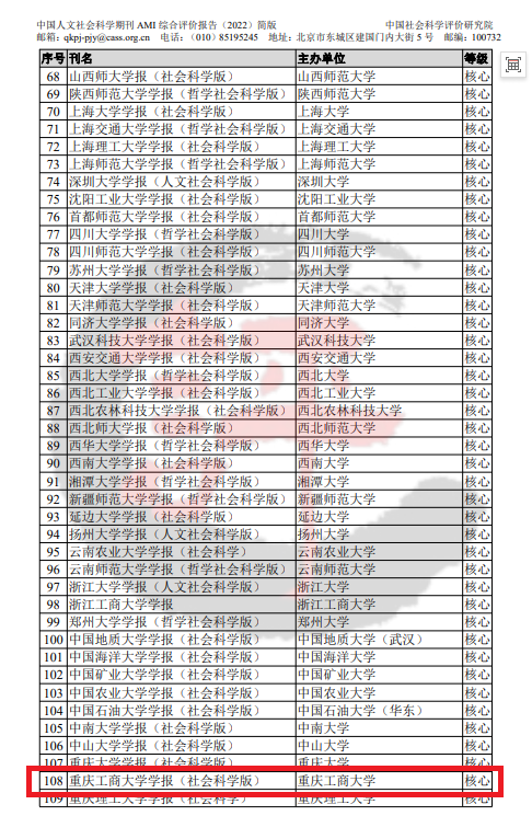 3月17日,由中国社会科学评价研究院主办的第十届全国人文社会科学评价高峰论坛暨期刊评价报告发布会在北京成功举行,《中国人文社会科学期刊AMI综合评价报告(2022)》正式发布。《华体会体育·(sports)官方网站学报(社会科学版)》首次入选中国人文社会科学期刊AMI综合评价(A刊)核心期刊。