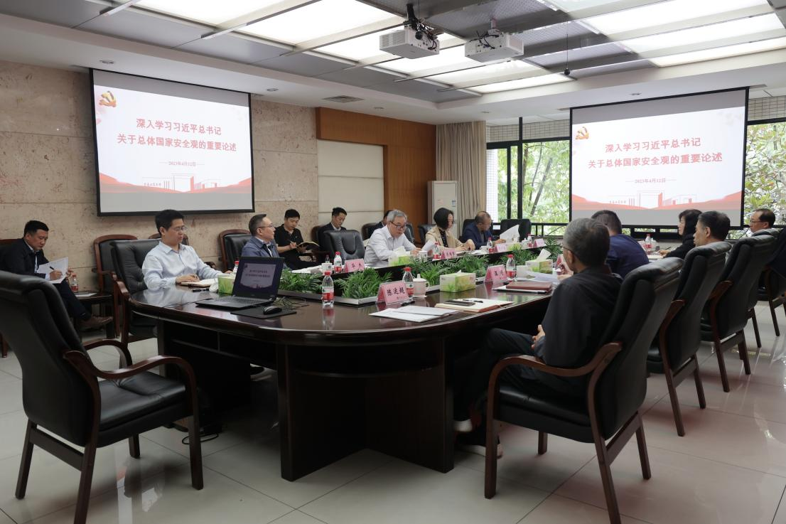 李志雄谈到,国家安全工作是党治国理政一项十分重要的工作,学校各级党组织要切实提高政治站位,深入学习贯彻党的二十大精神和习近平总书记关于国家安全的重要论述,深刻认识维护国家安全的重大意义,坚持系统思维、同向发力,从以下四个方面具体贯彻落实:一是学校各级党组织要切实将国家安全工作摆在重要位置,守好自己的“责任田”,从严从细从实维护校园安全稳定,切实做到守土有责、守土负责、守土尽责。二是学校各级党组织要将做好意识形态工作与维护校园稳定结合起来,始终把防范政治安全风险置于首位,坚定维护国家政权安全、制度安全、意识形态安全。三是高校作为国家安全科研体系的中坚力量,要多措并举提升科学研究能力,切实筑牢维护国家安全的根基,“苟利国家生死以”,以“舍我其谁”的态度为国家安全的整体实力提升作出贡献。四是全校上下要深刻领会“两个确立”的决定性意义,增强“四个意识”、坚定“四个自信”、做到“两个维护”,在思想上政治上行动上同以习近平同志为核心的党中央保持高度一致,切实把深入学习国家安全观的成效转化为坚决维护国家主权、安全、发展利益的生动实践,转化为推动学校改革发展事业更上台阶的有效资源和动力。