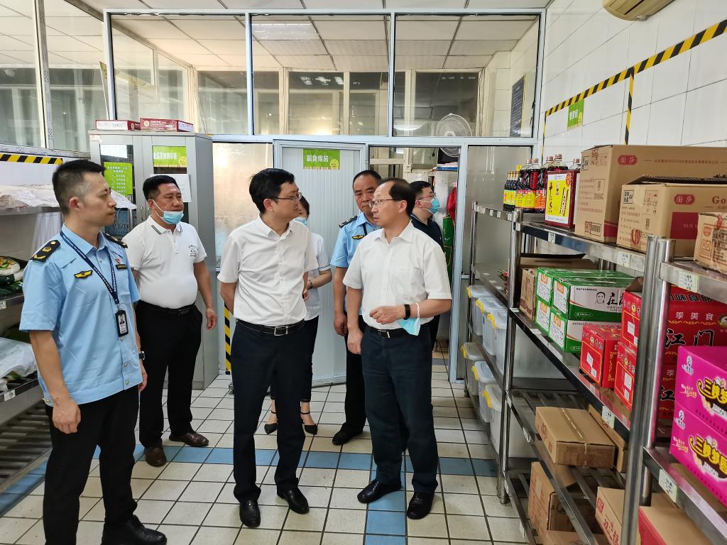 蒋文新一行深入我校筱园食堂就餐区域、操作区域等,仔细查看了食堂就餐环境、食品库房、食品加工间、烹饪间、食品留样间等的清洁卫生情况。检查中蒋文新强调,校园食品安全事关师生身心健康,是社会关注的重点、热点和焦点,学校要坚决担起食品安全主体责任,加强对食堂承包方的日常监督管理,做好食品安全隐患的排查与预防工作,保障全校师生舌尖上的安全。在检查中加强对老鼠、苍蝇等防范,对半成品食材冷藏等提出了要求。