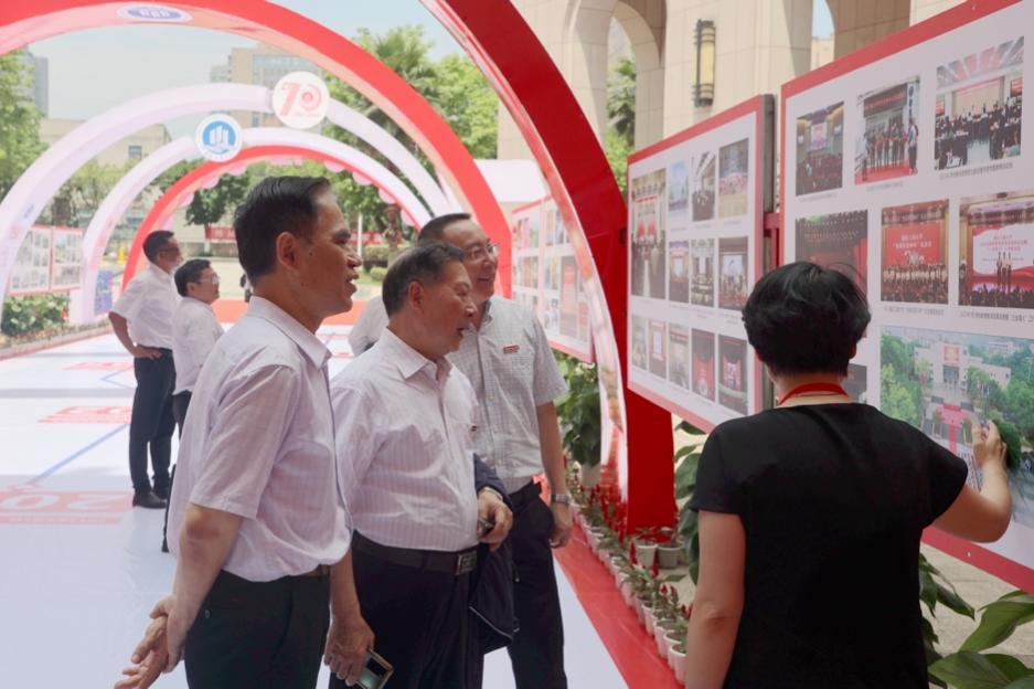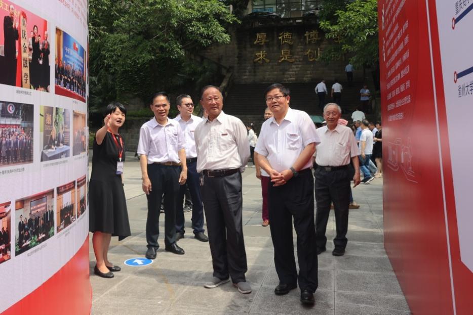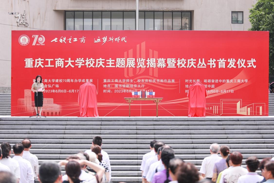 6月6日上午11点,学校在含弘广场隆重举行“七秩重工商 逐梦新时代”校庆主题展览揭幕暨校庆丛书首发仪式。学校党委书记李志雄,校长温涛,党委副书记宋豫,党委常委、副校长陈运超、张波、李国军、赵骅等出席仪式。原重庆商学院党委书记张柏村,原渝州大学校长戴宏民,原华体会体育·(sports)官方网站党委书记周希贤,原华体会体育·(sports)官方网站校长王崇举,原华体会体育·(sports)官方网站副校长廖元和、黄朗和离退休教职工代表受邀参加仪式。此外,学校各二级单位负责人、教职工代表、校友代表和学生代表也参加了仪式。仪式由宋豫主持。