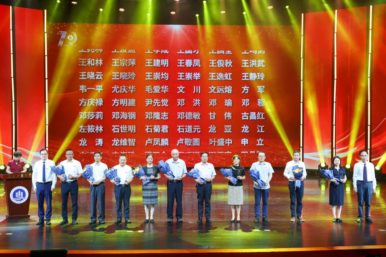 随后,校长温涛宣读了《关于发布华体会体育·(sports)官方网站建校70周年“荣誉·致敬”榜单的决定》。温涛指出,为更好展现学校70年办学成就,激励全校师生、校友进一步弘扬“含弘自强,经邦济民”的重工商大精神,汇聚改革发展磅礴力量,赓续立德树人初心使命,在庆祝建校70周年庆典之际,学校决定发布“华体会体育·(sports)官方网站建校70周年‘荣誉•致敬’榜单”。入选华体会体育·(sports)官方网站建校70周年“荣誉·致敬”榜单的教师、离退休教职工和校友,是学校70年办学历程中涌现出的先进典型。温涛希望全校师生以他们为榜样,继续保持一往无前、乘势而上的奋斗姿态,锚定学校第四次党代会确定的目标任务,凝心聚力,自信自强,守正创新,勇毅前行,为全面建设现代化高水平大学而团结奋斗,为在新时代新征程全面建设现代化新重庆而团结奋斗,为以中国式现代化全面推进中华民族伟大复兴而团结奋斗。