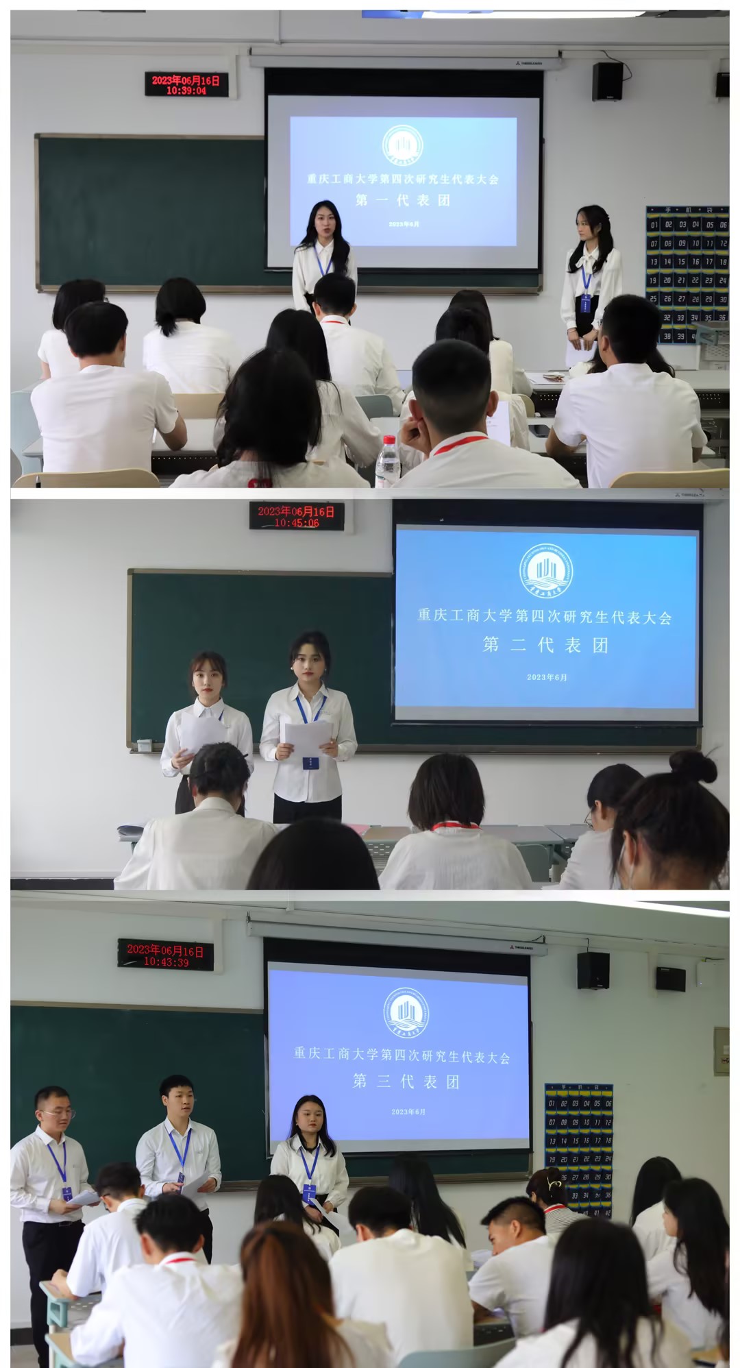上午9:30,第一次全体会议由田双全主持,市学联执行主席李文多宣读《重庆市学联关于同意召开华体会体育·(sports)官方网站第四次研究生代表大会的批复》,刘玉冰同学代表重庆理工大学研究生会向我校全体研究生同学致以最真挚的问候!