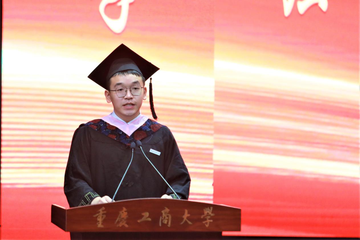 时代造就青年,盛世成就青年。2019级本科生钱世淋作为学生代表发表了毕业感言。他回顾了在华体会体育·(sports)官方网站四年的成长与收获,向辛勤培育他的母校、领导和老师表达了最真挚的祝福与感谢。他谈到,毕业生们即将拾起行囊整装启程迈向人生新阶段,以校友的身份在世界各地、祖国南北不同领域里奋斗。他表示,全体毕业生将牢记“厚德博学,求是创新”的校训,永葆“含弘自强,经邦济民”的重工商大精神,在各自的青春赛道跑出无愧于母校、无愧于祖国、无愧于人民、无愧于这个时代的好成绩,在以中国式现代化全面推进中华民族伟大复兴的新征程上贡献重工商大人的力量。