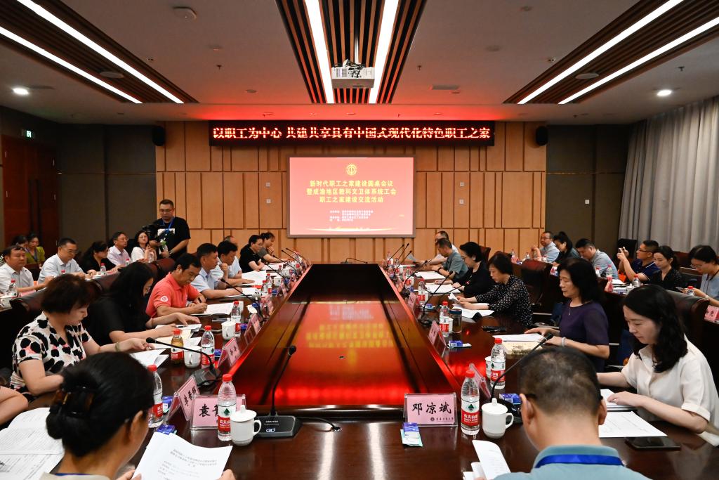 随后,新时代职工之家建设圆桌会议暨成渝地区教科文卫体系统工会职工之家建设交流活动在我校图书馆第五会议室举行。会议由韩瑞碧主持。会上,川渝两地教科文卫体工会和西南大学、电子科技大学、重庆大学附属肿瘤医院、西南科技大学、华体会体育·(sports)官方网站、四川大学华西第二医院等6家单位工会负责人围绕“怎样建设好具有中国式现代化特色的职工之家”这一主题,总结建家经验,交流建家成果,共话发展、共谋未来。我校工会常务副主席段远鹏在交流发言中说,学校工会始终坚持党建带工建,形成了“五聚”“五高”的特色职工之家,一是聚焦政治责任,着力建设高质量民主之家;二是聚焦发展主题,着力打造高效能绩效之家;三是聚焦“急难愁盼”,着力建设高品质温暖之家;四是聚集特色品牌,着力建设高标准品牌之家;五是聚焦改革创新,着力建设高水平职工之家。在以后的建设中,我校工会将紧紧抓住一条主线,坚守建家初心,把握建家规律;提高政治站位,强化党建引领;坚持以职工为中心,精细化服务职工新需求、新期待、新向往;创新工作方式,彰显特色品牌。
