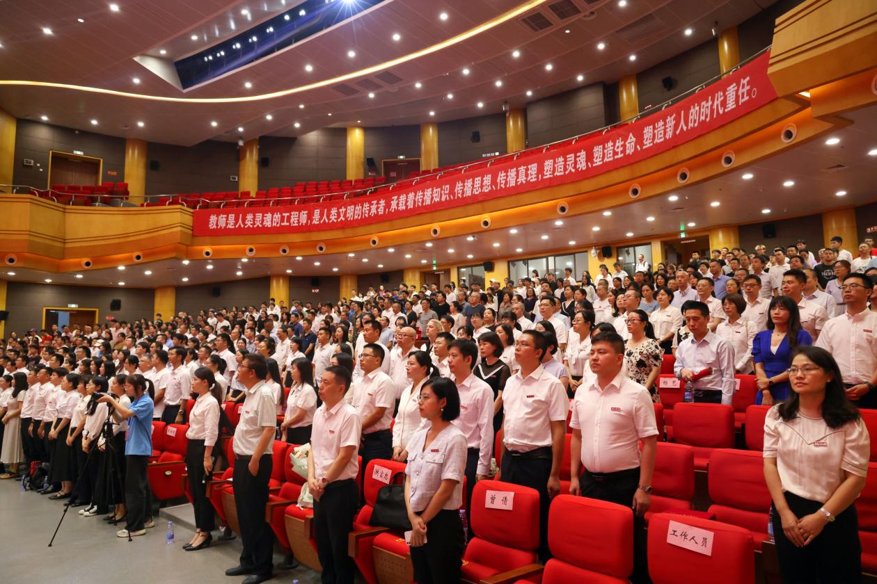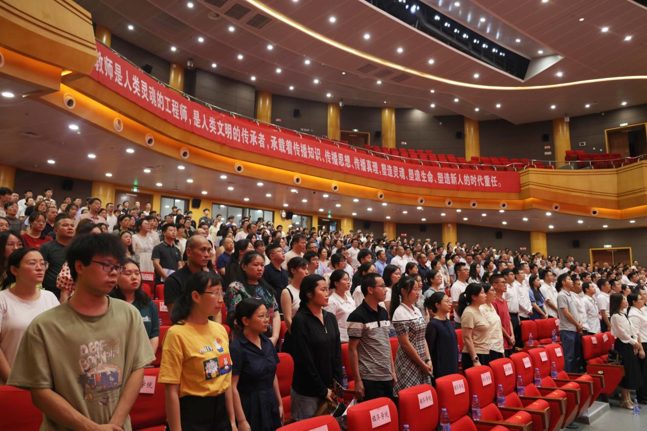 为深入学习贯彻习近平新时代中国特色社会主义思想和党的二十大精神,热烈庆祝第三十九个教师节,表彰和鼓励为全校教育事业做出重要贡献的教职员工,9月8日下午,我校在图书馆剧场举行教师节庆祝表彰大会。全体在家校领导,受表彰人员代表,中层干部代表,教职工代表,离退休人员代表和学生代表参加大会。会议由党委常委、副校长李敬主持。