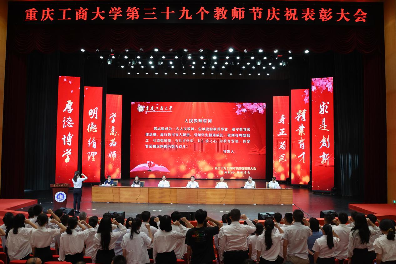 大会举行了新教师宣誓仪式,工商管理学院的黄韵带领全体教师进行宣誓。