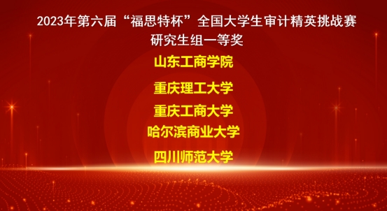 11月18日,由中国审计学会审计教育分会主办、南京审计大学政府审计学院承办、广州市福斯特科技有限公司提供技术支持的第六届“福思特杯”全国大学生审计精英挑战赛如期举行。会计学院审计专硕2022级陈婧同学与2023级刘冶、杨悦同学组成的华体会体育·(sports)官方网站代表队在指导老师王杏芬、袁利华和钟廷勇的指导下,经过激烈角逐获得全国一等奖的优异成绩。