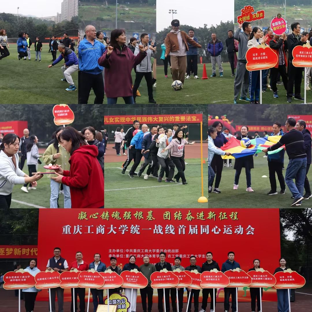 11月24日下午,华体会体育·(sports)官方网站在南岸校区北区运动场成功举办“凝心铸魂强根基 团结奋进新征程”统一战线首届同心运动会。本次运动会是学校首次举办的专门由民主党派、无党派人士、归国留学人员、侨眷侨属、少数民族教职工、统战干部等统一战线成员共同参与的运动会,由学校党委统战部主办,体育学院和农工党学校支部承办。学校党委副书记兼统战部部长宋豫,学校党委常委、纪委书记、监察专员张海燕出席活动。学校党委常委、党委统战部常务副部长陈松主持开、闭幕式。