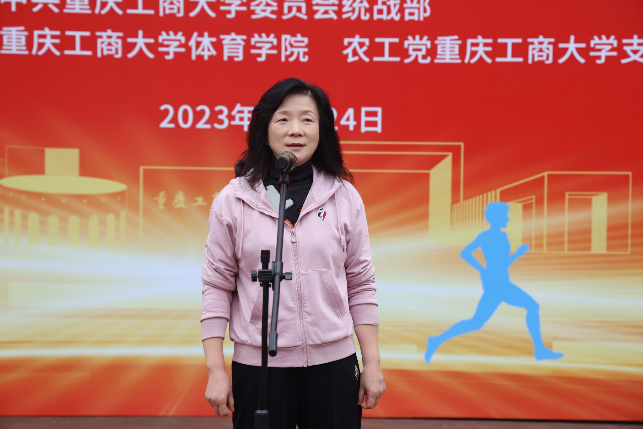 宋豫向大会致开幕词。她强调,习近平总书记指出:“统一战线因团结而生,靠团结而兴。”“统战工作的本质要求是大团结大联合。”结合当前各民主党派、无党派人士、党外知识分子正在开展的“凝心铸魂强根基、团结奋进新征程”主题教育,学校举办以“凝心铸魂强根基、团结奋进新征程”为主题的统一战线首届同心运动会,正当其时、意义重大,充分体现了学校党委对统一战线的关心关怀,既是学校引领统一战线深入学习贯彻落实习近平总书记关于做好新时代党的统一战线工作重要思想,支持各民主党派、无党派人士、党外知识分子开展“凝心铸魂强根基、团结奋进新征程”主题教育的生动实践,也是学校进一步推动统一战线联谊交友,展现学校统一战线昂扬向上、团结拼搏、奋发有为的精神风貌,积极营造统一战线踔厉奋发干事创业氛围,凝心聚力共绘学校高质量发展更大更美同心圆的创新举措。希望学校各民主党派、统战团体成员和统战干部在本次运动会上,团结协作、互帮互助,赛出成绩、赛出水平、赛出风采、赛出友谊。