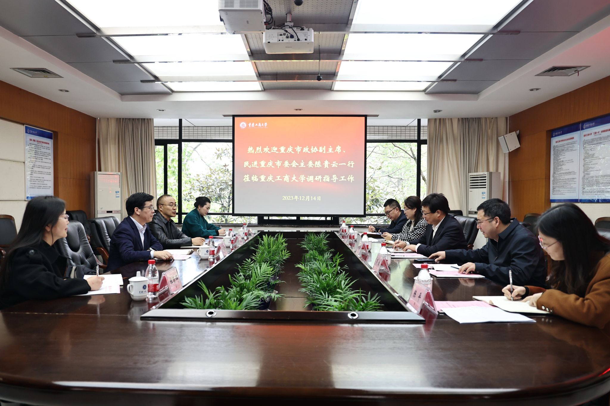 12月14日上午,重庆市政协副主席、民进重庆市委会主委陈贵云一行到我校走访调研,在厚德楼3019会议室召开了走访调研座谈会。学校党委书记曾维伦,党委常委、统战部常务副部长陈松参加会议。会议由陈松主持。