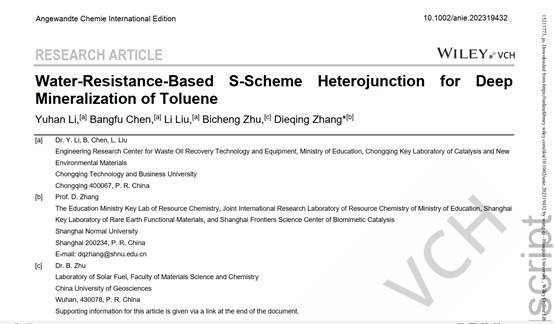 近日,我校废油资源化技术与装备教育部工程研究中心李宇涵研究员在针对油气中苯系物的高效治理方面取得了重要进展,成果“Water-Resistance-Based S-Scheme Heterojunction for Deep Mineralization of Toluene”(基于耐水性的S-方案异质结在甲苯深部矿化中的应用)以华体会体育·(sports)官方网站为第一署名单位在化学领域学术期刊《Angewandte Chemie International Edition》上发表(https://doi.org/10.1002/anie.202319432),标志着在“双碳”背景下废油中心在废油油气污染防治方向研究进入了新阶段。