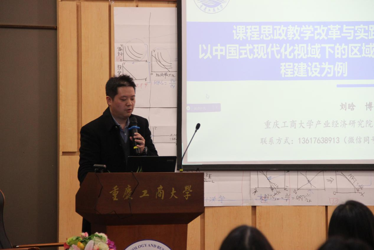 此外,在经验分享阶段,四位作了专题讲座,在强化课程基础理论,优化教育教学方面设置了“传、帮、带”、经验共享、案例解说的环节,助推课程建设群策群力、融通共建,进一步为课程建设、教学技能提升提供了引导。我校刘晗副教授以中国式现代化视域的区域经济学课程建设为例,分享了我校课程思政教学改革与实践的经验做法,引起了与会老师的热烈反响和一致好评。