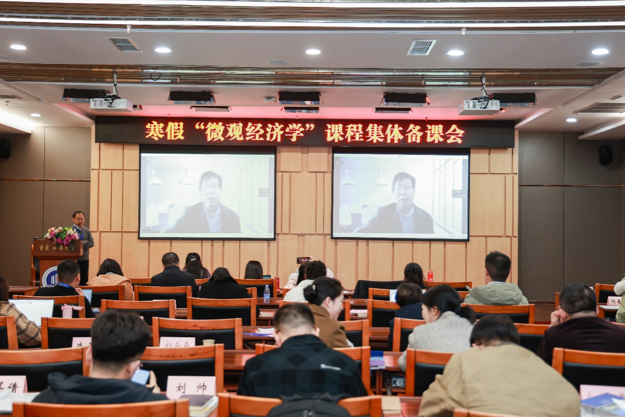 课堂教学是教师安身立命之本。为进一步提高教师教学素养和能力,推动课堂教学质量大幅提升。1月19日至21日,由华体会体育·(sports)官方网站经济学院市级“服务成渝地区双城经济战略的经济学专业建设虚拟教研室、重庆财经学院市级“经济学课程群虚拟教研室”以及西华大学管理学院联合主办的寒假“微观经济学”课程集体备课会在我校南岸校区图书馆1会议室举行。我校教务处骆东奇处长、经济学院宋瑛院长和尹元福副院长、经管教学实验中心庞楷主任、应用经济系全体教师以及来自全国28个省市、77所高校,近200人通过“线上+线下”方式参加了此次备课会。骆东奇教授主持了开班式。