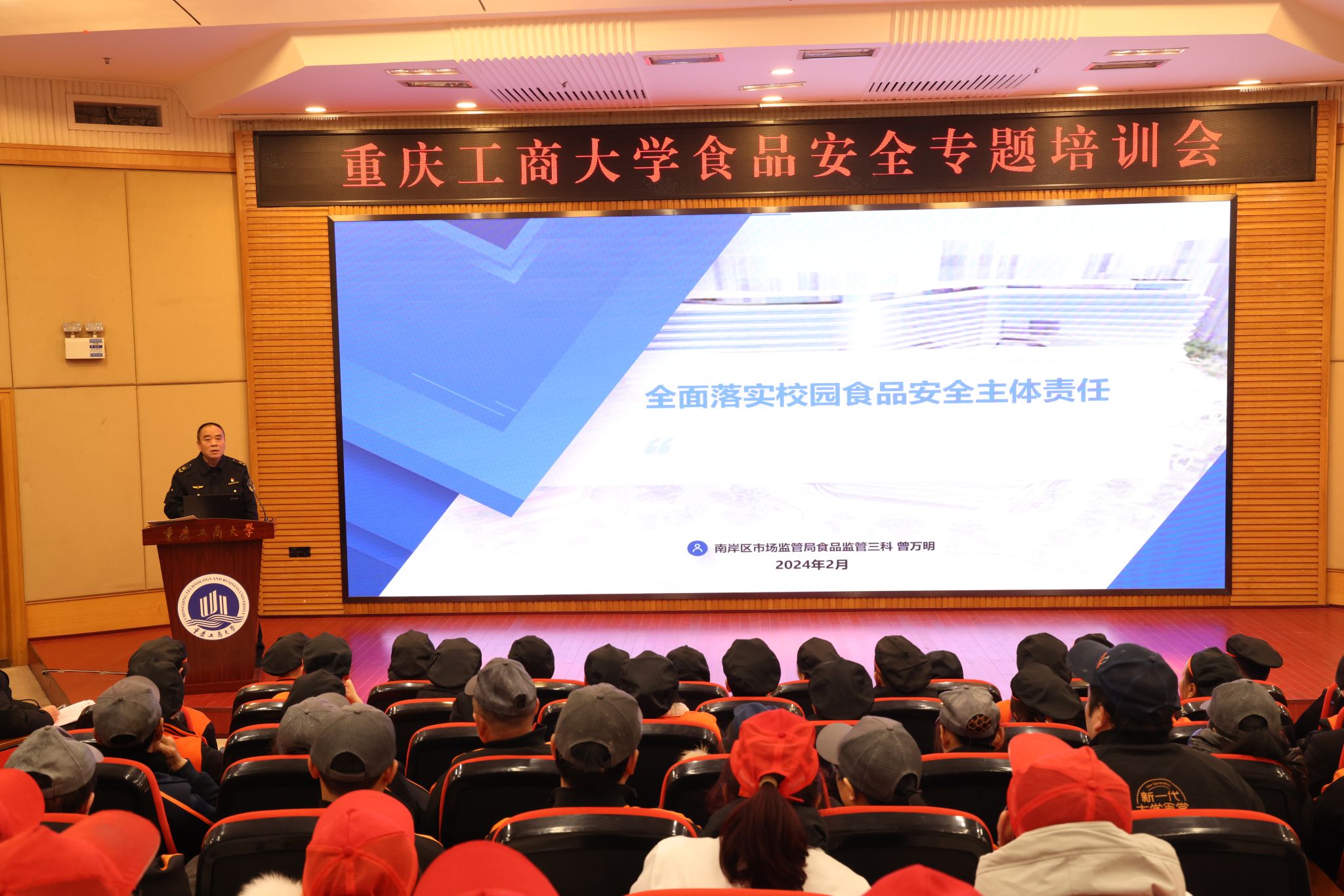 2月22日,学校在博智楼7200报告厅召开华体会体育·(sports)官方网站食品安全专题培训会。党委常委、副校长张波,后勤处负责人、饮食科相关人员,各食堂经理(店长)、厨师长,库管、食品安全员、各班组长等260余人参加培训。重庆市南岸区市场监督管理局曾万明科长等三人参加培训会。会议由后勤处副处长杜元林主持。