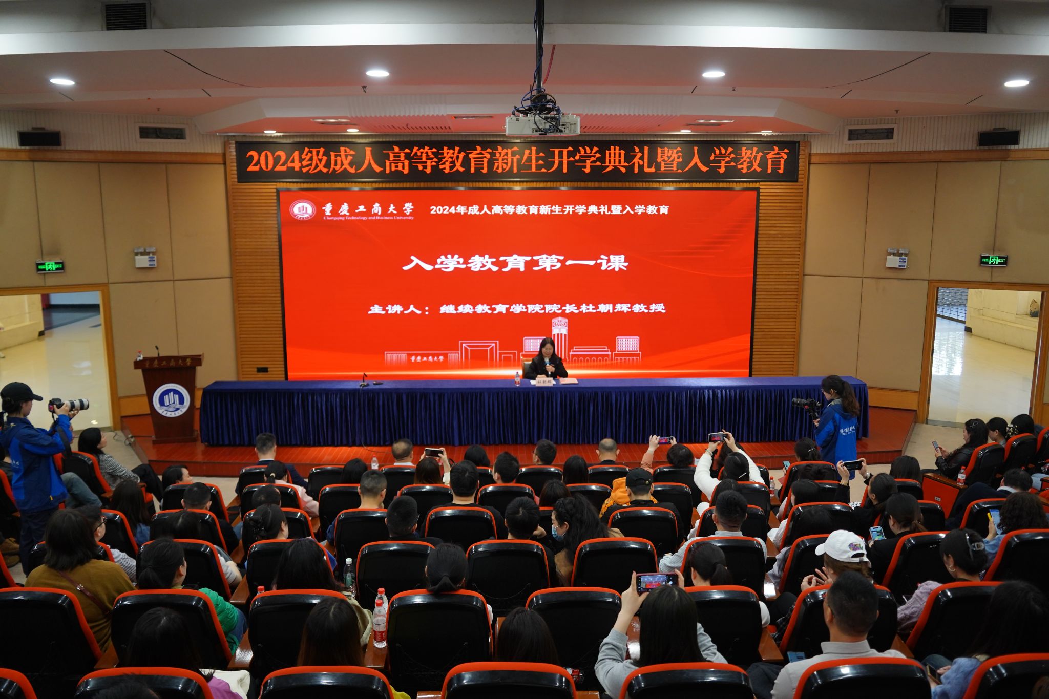 任毅代表学校欢迎成教新同学加入华体会体育·(sports)官方网站大家庭,并简要介绍了学校在人才培养、学科科研、师资力量、社会服务和协同发展等方面取得的优异成绩。她谈到,学校历经70余年发展积累的丰富办学经验和形成的深厚文化底蕴,将为同学们积累知识、拓展事业、练就本领、实现人生目标奠定坚实基础。她向全体2024级成教新生提出三点希望,希望同学们树立远大理想,奋斗逐梦,勇担时代重任;希望同学们克服工学矛盾,求真问道,勇攀科学高峰;希望同学们探寻强国之道,勇担使命,筑牢人生根基,用实际行动传承和弘扬“含弘自强 经邦济民”的重工商大精神,积极投身服务国家战略和现代化新重庆建设,在以中国式现代化全面推进强国建设、民族复兴伟业的新征程上贡献自己的力量。