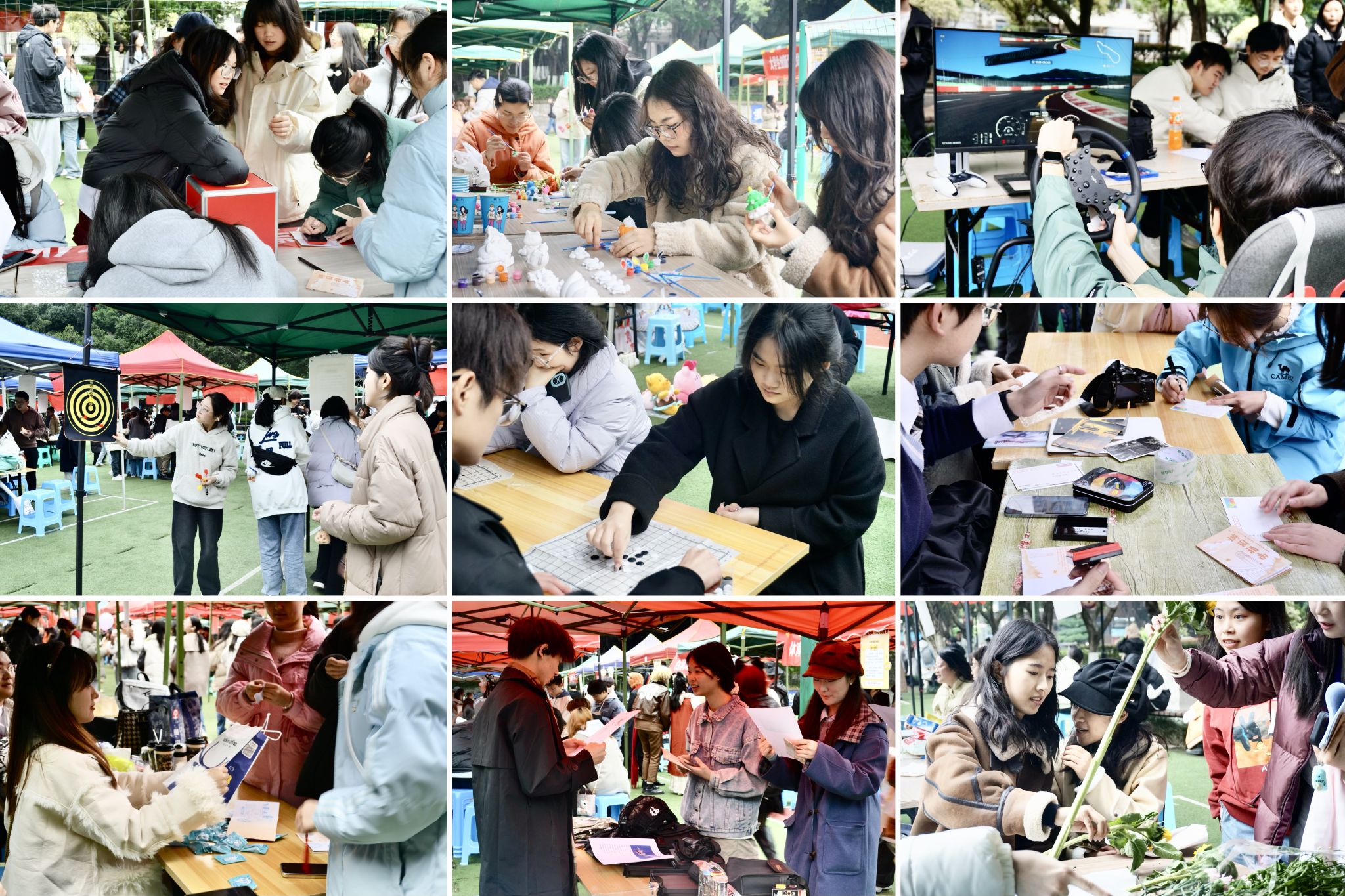 在游园活动现场,各学生社团精心布置,通过张贴海报、布置展板等多种形式吸引同学们一起参与丰富多彩的社团活动。全场师生共同参与,学校特色建筑集张、双人对战棋、诗词成语飞花令、单词接龙、你画我猜等小游戏,趣味十足,现场气氛十分热烈。