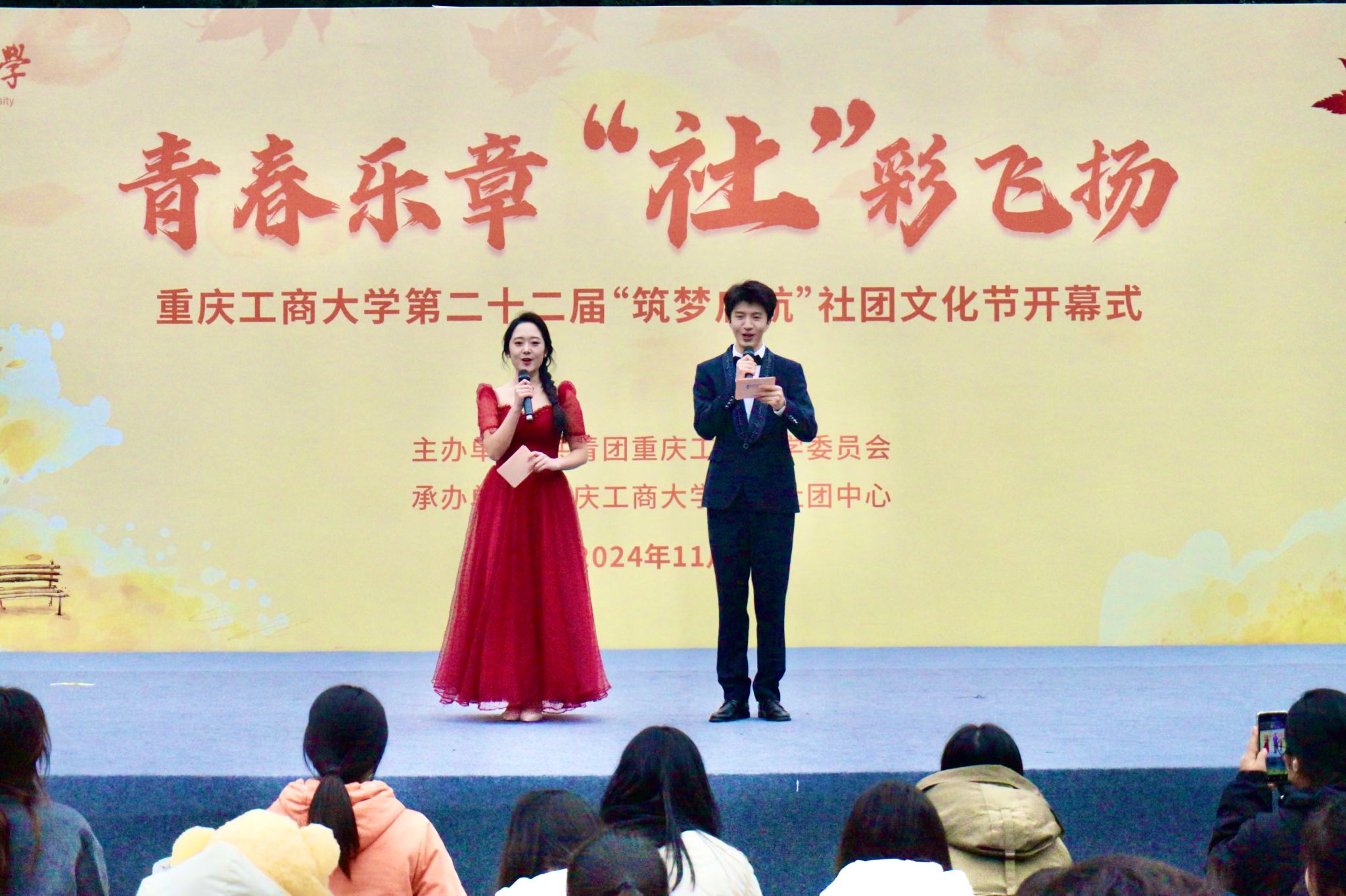 11月29日,由校团委主办的第二十二届“筑梦启航”大学生社团文化节开幕式在江北校区举行。校团委书记吴佑波、副书记王微,校团委王灿、袁影,通识学院分团委梅艺与2000余名同学共同参与这场青春盛宴。