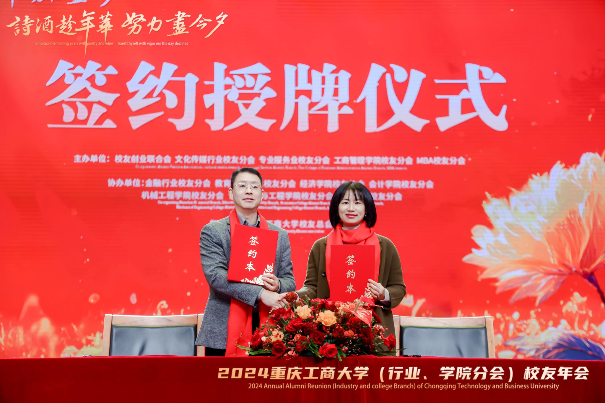 本次年会是由学校校友总会指导,校友创业联合会、文化传媒行业校友分会、专业服务业校友分会、工商管理学院校友分会、MBA校友分会主办,金融行业校友分会、教育科技行业校友分会、经济学院校友分会、会计学院校友分会、机械工程学院校友分会、食品科学与工程学院校友分会、艺术学院校友分会协办。年会采取了线下现场与线上直播同步开展的方式,线上直播视频观看逾2500人、直播点赞数超过6600,线上图片直播浏览量高达69146人次。