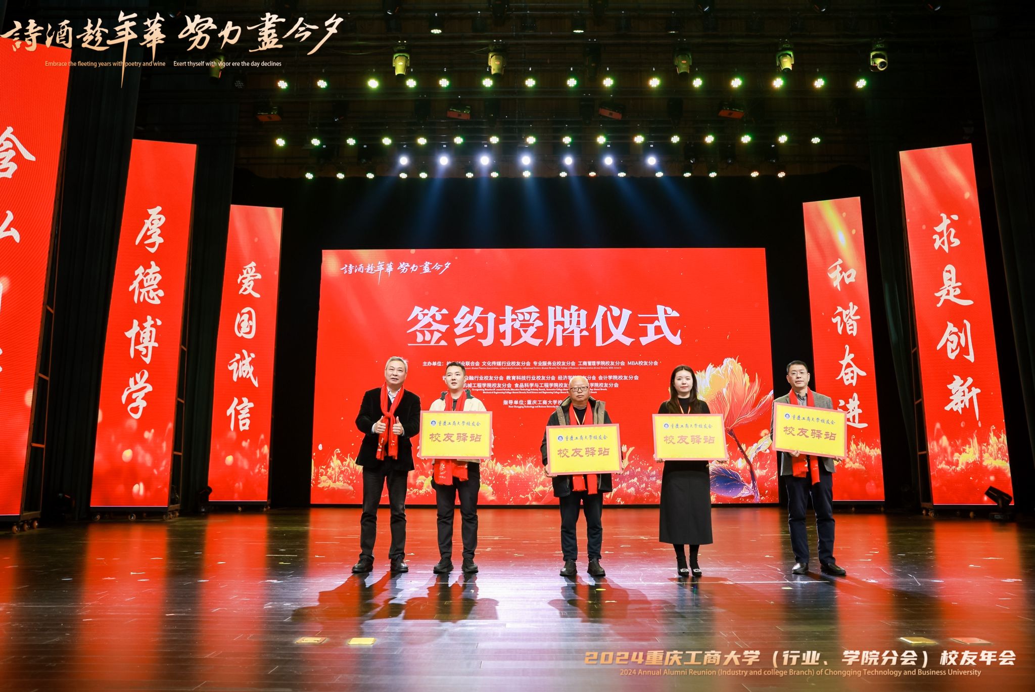 会上,举行了主题分享、圆桌沙龙活动以及校友驿站授牌、校企合作签约仪式。