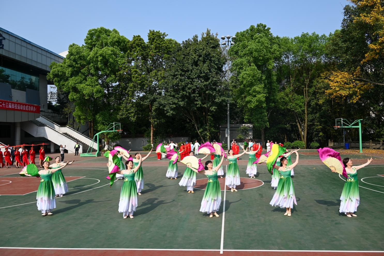 与此同时,第二十三届离退休老同志运动会正在南区篮球场进行。老同志们个个精神抖擞、兴致高昂,脸上洋溢着灿烂的笑容,仿佛回到了年轻时的时光。