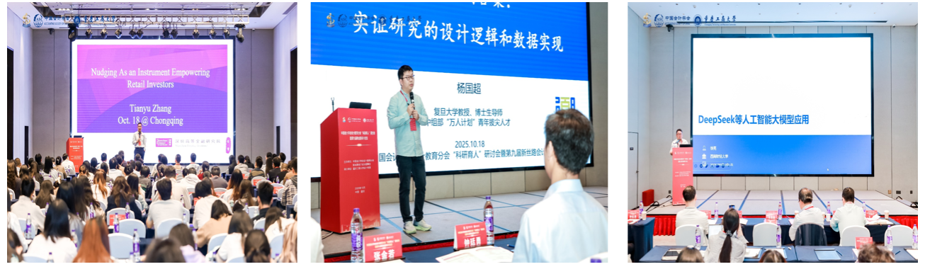 随后,在主题报告环节,香港中文大学(深圳)讲席教授、西南财经大学会计学院学术院长张田余教授、复旦大学杨国超教授、西南财经大学徐亮教授分别以《Nudging as an Instrument to Empower Retail Investor》《从问题到答案:实证研究的设计逻辑和数据实现》《大模型与智能体技术及在企业风险控制中应用》为题做了主题报告。西南大学杜勇教授、西北工业大学陈琳教授、四川大学李子扬教授分别做了串讲报告。主题报告和串讲报告分别由广东外语外贸大学王艳教授、华体会体育·(sports)官方网站蒋水全教授、重庆大学刘斌教授主持。