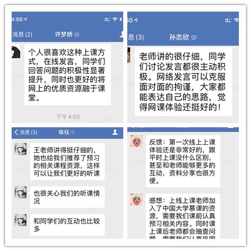 3月9日上午8:30,本学期研究生第一节课准时开始,为保证在线教学顺利进行,柏群副校长及研究生院领导深入培养单位,并与各培养单位领导深入到在线教学一线课堂,检查、了解教师上课及学生听课情况。线上教学第一天共有30门研究生线上课程上线,学生在线听课337人次,教师使用企业微信占比90%,其他占比10%。从在线课堂日志以及学生及相关研究生教学管理人员深入课堂反馈情况看,网络运行顺畅,教师精神饱满,学生认真热情,线上教学效果良好,研究生出勤率为100%,新学期研究生线上教学有序平稳开启。