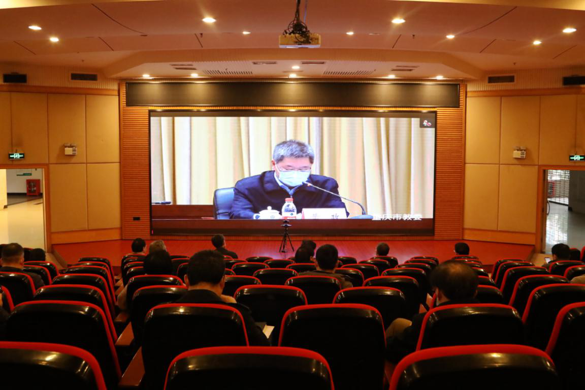 3月16日下午,学校全体校领导和相关部门负责人在7200学术报告厅参加“2020年全市教育工作会议”。此次工作会采取视频会议形式,由市政府副秘书长唐慎主持。