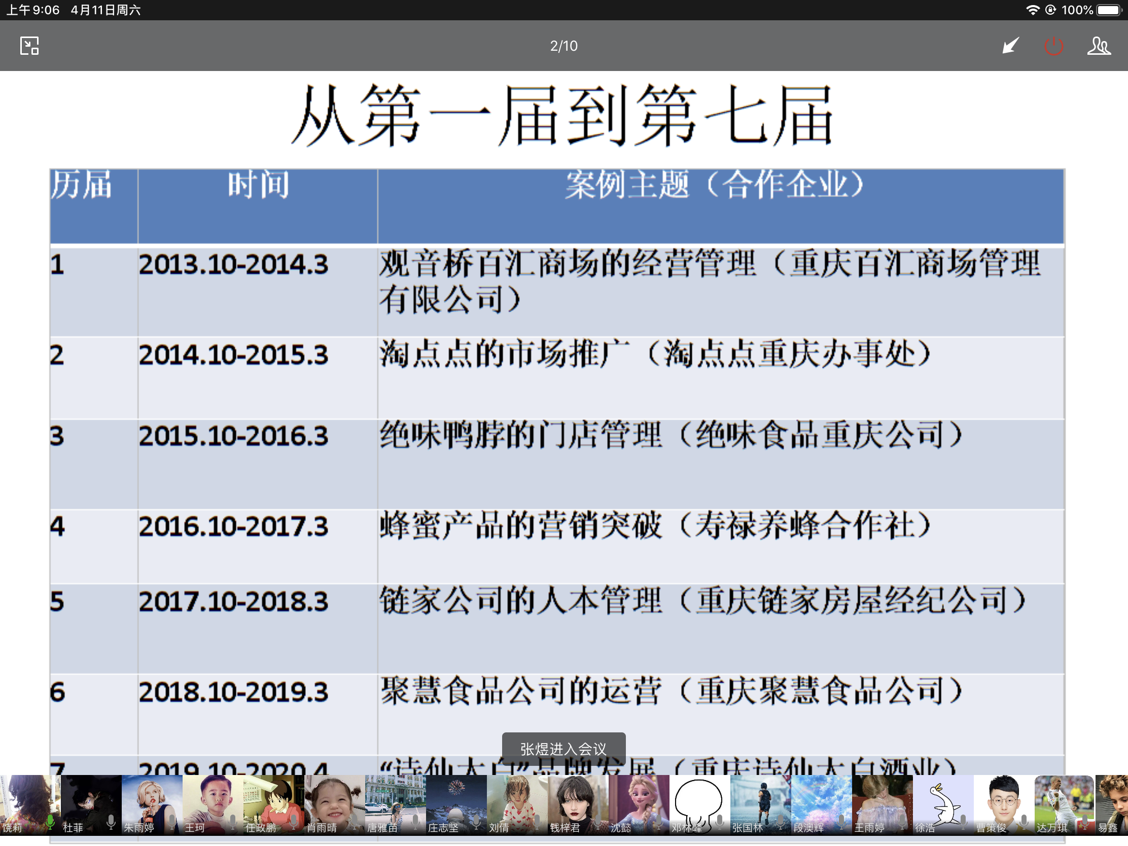 比赛正式开始前,杨柏院长开场致辞,表达了对诗仙太白有限公司两位高管出席及给予支持的感谢,并鼓励参赛的同学通过此次比赛丰富自己的学习经历,增长才干。随后,饶莉副教授回顾了八年来我校管理案例大赛的发展历史并介绍了第七届比赛的基本情况:在来自12个学院的29个专业组合的90支参赛队伍的基础上,经过半年以来的深入研究以及初赛、复赛两轮的激烈比拼,7支队伍脱颖而出进入决赛。工具人队第一个出场也毫不胆怯,流利的阐述、简洁精美的PPT以及镇定的回答评委老师提出的问题让人称赞,为此次线上决赛开了一个好头。接下来依次出场的FIC队、BOT队、盛世唐朝、一个好名字队、案例真香队以及小李张飞队都用自己团队独特的理解,从不同角度思考并最终提出自己的想法,给评委、观众带来了一场管理知识碰撞的盛宴。当七支队伍全部展示完成后,重庆诗仙太白酒业有限公司王永刚总监对他们进行了点评,指出这七支队伍从理论角度、资料引用、品牌建设、文化格局、公司治理问题等方面都让他很有收获。赖家国董事长回顾了诗仙太白酒业发展历程,谈了支持学校实践教学活动的体会,对同学们提出殷切希望。学院工商管理系主任陈伟教授进行了总结,表达了对重庆诗仙太白有限公司的感谢,认为此次管理案例大赛不仅考察了同学们的管理分析能力、对Word等文档的应用能力、与人沟通能力等,也加强了同学们的实践能力,鼓励更多的同学能够参与其中并表达了对未来经理人协会以后能够组织开展更多此类活动的殷切希望。