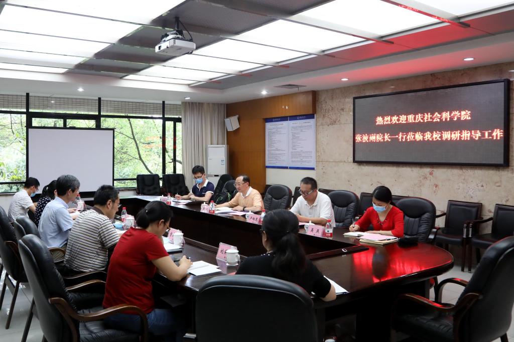 5月21日下午,重庆社会科学院副院长张波、智库处处长卢向虎和有关工作人员一行到我校调研座谈。校长孙芳城、副校长柏群,社科处处长曾庆均和有关工作人员在3019会议室参加调研。座谈会由柏群主持。