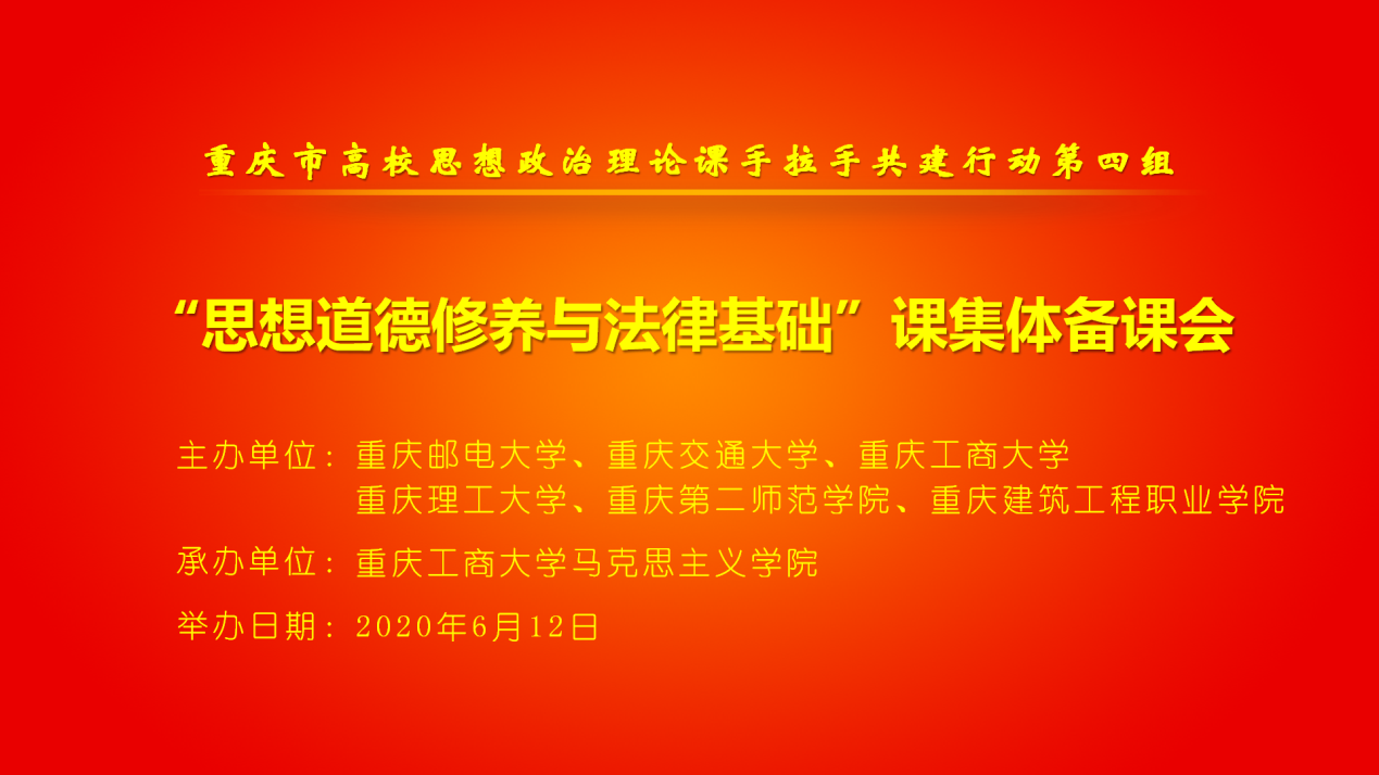 为贯彻落实习近平总书记在学校思想政治理论课教师座谈会上的重要讲话精神,根据中共重庆市委教育工作委员会办公室、重庆市教育委员会办公室《关于开展高校思想政治理论课手拉手共建行动的通知》要求,6月12日下午,重庆市高校思想政治理论课手拉手共建行动第四组在腾讯会议平台召开“思想道德修养与法律基础”课集体备课会。会议由华体会体育·(sports)官方网站马克思主义学院、重庆市教学科研示范团队“思想道德修养与法律基础”华体会体育·(sports)官方网站团队承办。第四组成员单位华体会体育·(sports)官方网站、重庆邮电大学、重庆交通大学、重庆理工大学、重庆第二师范学院、重庆建筑工程职业学院及市内外高校思政课教师400余人参加会议。会议由马克思主义学院院长王仕勇教授、副院长刘富胜教授主持。第四组组长单位重庆邮电大学马克思主义学院院长代金平教授和副院长郑洁教授分别致开幕词和闭幕词。