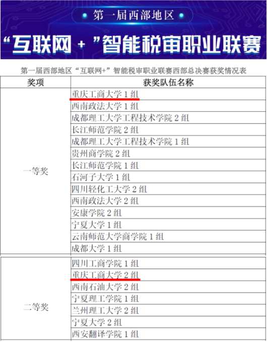 6月13日,由中华会计网校主办、中国高等教育学会高等财经教育分会协办的“首届西部地区‘互联网+’智能税审职业联赛”总决赛在云端拉开帷幕,吸引了西南政法大学、贵州财经大学、西南石油大学等50多所本科高校、2200余人次参赛。我校会计学院钟代鑫、陈安娜、李飞越三名同学组成的华体会体育·(sports)官方网站1组一路披荆斩棘,以排名第一的综合成绩斩获一等奖;由康瑜茜、丁俊程、陈欣组成的华体会体育·(sports)官方网站2组也表现优异,荣获二等奖;会计学院会计学系王成敬副教授和审计学系蒋水全博士荣获“优秀指导教师”奖。
